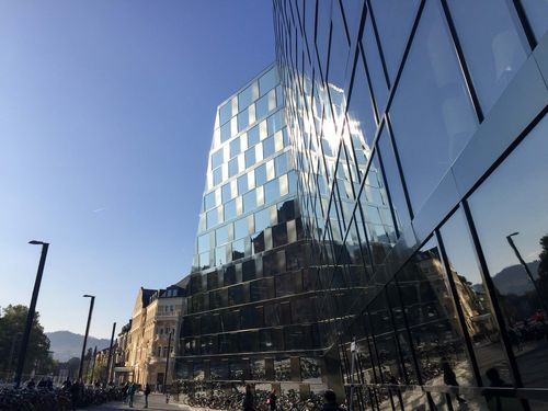 Die schwarze Edelstahl Fassade der Universitätsbibliothek Freiburg vereint Ästhetik und Funktionalität auf beeindruckende Weise. In einer Kooperation zwischen Degelo Architekten und Itten+Brechbühl Architekten erstrahlt das Gebäude in einer innovativen Kombination aus Glas und schwarzem Edelstahl, das nicht nur hohen energetischen Anforderungen entspricht, sondern auch einen Dialog mit der umgebenden Architektur schafft. Die Lumo Sheen Schwarz Oberfläche reflektiert das Licht und integriert sich harmonisch in die Umgebung. Diese Fassadensanierung hebt sich durch klare Linien und moderne Materialien ab und demonstriert die Expertise von INOX COLOR im Bereich metallischer Fassadendesigns. Entdecken Sie, wie moderne Architektur mit energieeffizienten Fassadentechniken und reflektierenden Fassadenmaterialien eine neue Dimension erhält.