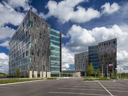 Die Edelstahlfassade des Cerner Continuous Campus ist ein herausragendes Beispiel moderner Fassadengestaltung, die die Werte und Visionen von Cerner widerspiegelt. Umgeben von einem hochperformanten hinterlüfteten Fassadensystem aus warmbraunem, strukturiertem Edelstahl, verbindet das Design Funktionalität mit Ästhetik. Die kreative Fensteranordnung, inspiriert von DNA-Sequenzierung und binärem Code, maximiert den natürlichen Lichteinfall und fördert die Energieeffizienz. Diese innovative Fassadenlösung ist nicht nur ein Ausdruck zeitgenössischer Metall-Architektur, sondern auch ein Zeichen für Nachhaltigkeit und verantwortungsbewusste Materialwahl. Bei INOX COLOR sind wir stolz darauf, Architekten und Designern bei der Verwirklichung solcher einzigartiger Edelstahloberflächen zu unterstützen und damit zur Gestaltung zukunftsorientierter Arbeitsumgebungen beizutragen.